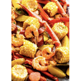 Add your choice of seafood and/or sausage, corn on the cob, and potatoes.
